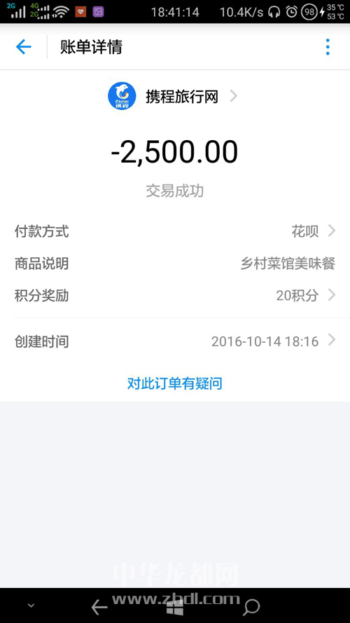 ????一番周旋后,小王意識到他已經(jīng)很難向?qū)Ψ揭刂Ц兜?500元,便查詢這筆錢的流向。根據(jù)賬單顯示,小王的2500元支付給了攜程旅行網(wǎng),另外兩筆未生成的交易收款方分別為攜程旅行網(wǎng)和北京世紀(jì)卓越信息技術(shù)有限公司。已經(jīng)支付的2500元最后通過攜程旅行網(wǎng)流向了百度糯米訂餐軟件中的一家名叫“鄉(xiāng)村菜館”的店鋪(圖5)。