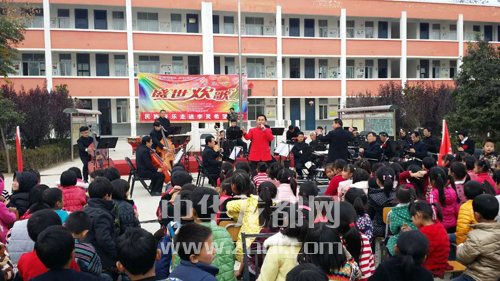 ????11月11日下午,周末公益劇場(chǎng)民族交響音樂(lè)進(jìn)校園活動(dòng)在許灣鄉(xiāng)李靈希望小學(xué)舉行, 周口民族管弦樂(lè)團(tuán)的老師為該校600多名師生上了一節(jié)別開生面的音樂(lè)課,讓孩子們近距離感受到交響樂(lè)的魅力。晚報(bào)記者 王晨 攝