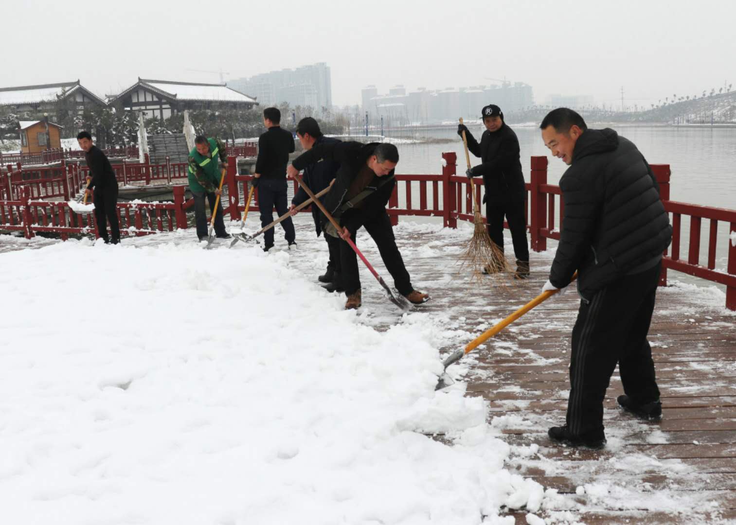 中華龍都網(wǎng)訊(周口報(bào)業(yè)全媒體記者馬治衛(wèi) 通訊員洪濤 傳保)1月7日,鹿邑縣市政園林中心全體人員與十余名志愿者一起到上清湖公園打掃積雪,方便群眾在上清湖游樂。