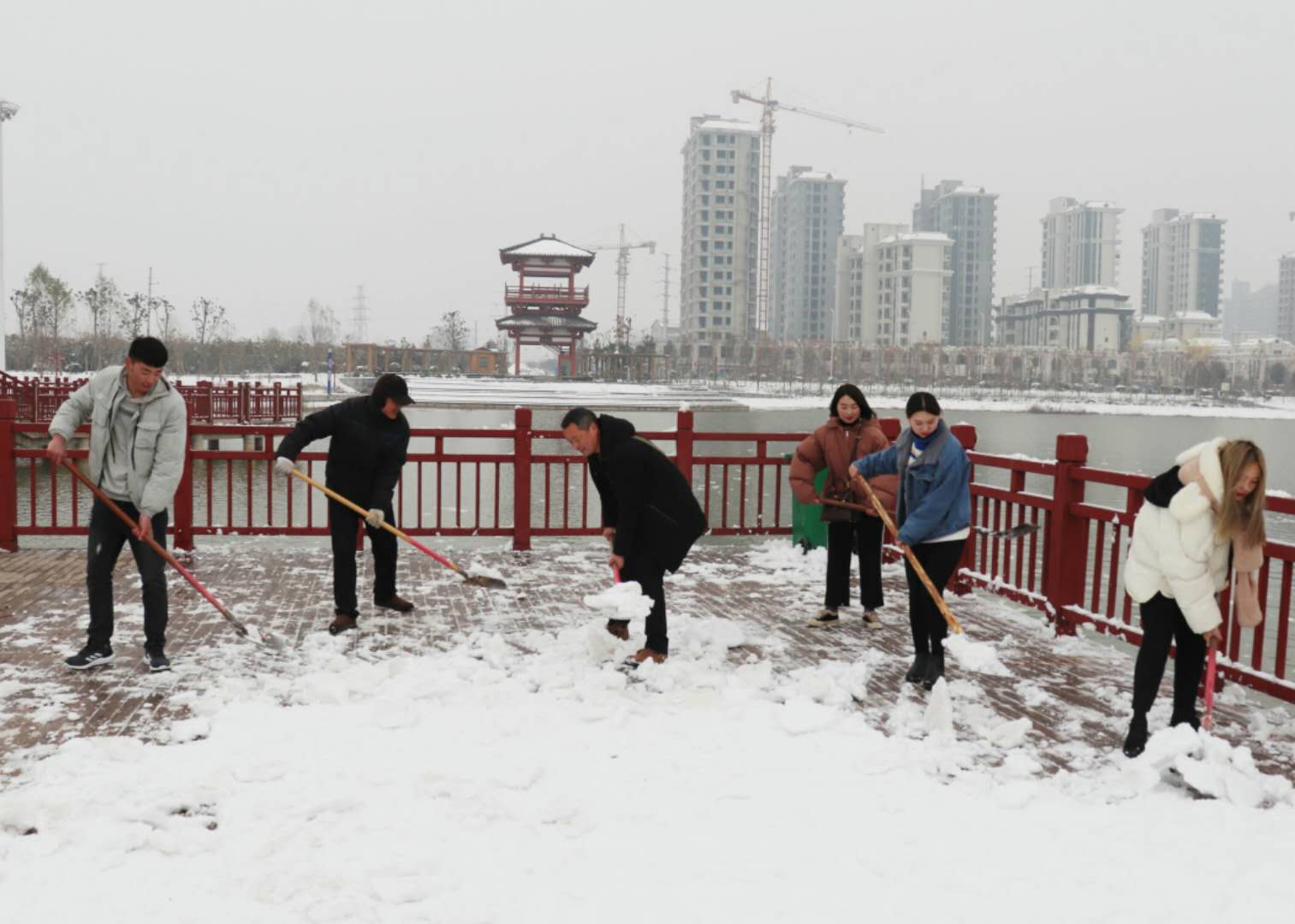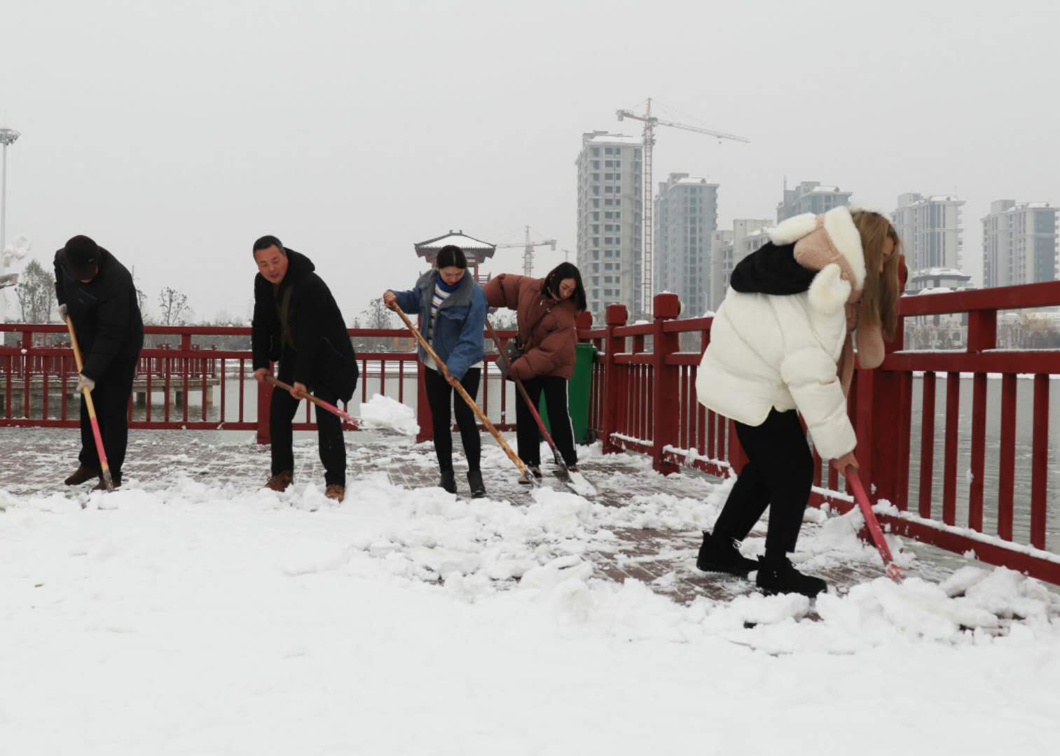 經(jīng)過兩場(chǎng)大雪的洗禮,空氣格外清新,但鹿邑上清湖公園內(nèi)積雪嚴(yán)重,且已結(jié)冰,給市民游園帶來了諸多不便和隱患。從早晨到下午4點(diǎn)半,鹿邑市政園林中心的干部職工和道德公益志愿者在上清湖集合后,投入鏟雪掃雪行動(dòng),經(jīng)過一天的緊張清掃,上清湖湖面棧道和園內(nèi)公路上的積雪清掃一遍。道德公益志愿者鐘華在微信群里提出建議后,有十幾位志愿者報(bào)名參加上清湖義務(wù)掃雪活動(dòng)。