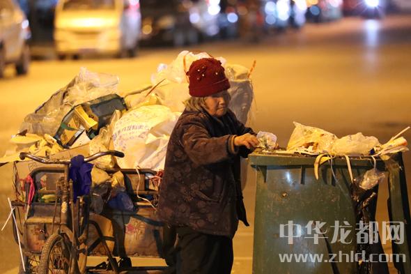 如果天氣允許,每天傍晚6點半到深夜11點之間,在淮陽縣西關弦歌西路和新民南路交叉口附近,你都會見到一位身材矮小、騎著或推著一輛破舊三輪、上年紀、一只眼睛失明的老奶奶,在一個又一個垃圾桶前停下,翻揀廢舊紙箱、塑料瓶。把揀拾的廢品放上三輪車,老人還不忘用隨身帶的鐵锨清理好凌亂的垃圾,再到下一個垃圾桶邊繼續(xù)翻揀。