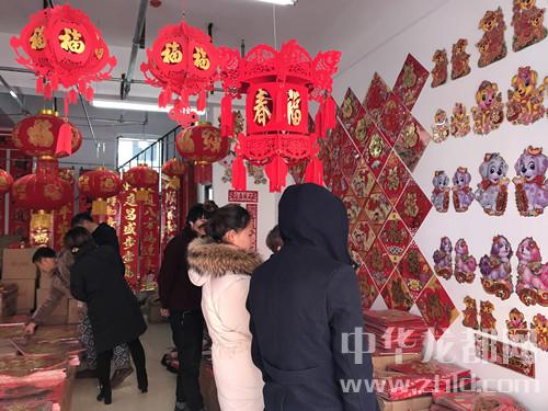 近日,華耀城A區(qū)精品市場內(nèi)出現(xiàn)了一條“紅街”,因?yàn)檫@條街上的門店賣的是對聯(lián)、窗花、紅燭等紅色的商品?!芭l(fā)對聯(lián)就年前一個月的好生意,這幾天忙不過來,家里的親戚都來幫忙了!”經(jīng)營對聯(lián)批發(fā)生意的李陽說。他的店里掛著各式各樣的對聯(lián)、年畫(圖二),其中一些帶有小狗元素的裝飾品銷量特別好。