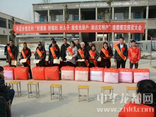 中華龍都網(wǎng)訊(周口報(bào)業(yè)全媒體記者 付永奇 趙永昌 文/圖))2月10日下午,商水縣平店鄉(xiāng)曾莊小學(xué)操場(chǎng)內(nèi),人頭攢動(dòng)、熱鬧非凡,村里評(píng)選出來(lái)的10位好婆婆、好媳婦、好兒子、清潔文明戶、脫貧光榮戶等“五好”群眾代表身披綬帶、胸戴紅花,臉上都洋溢著幸福的喜悅;一些民間文藝團(tuán)體分別助興表演了挑花籃、扇子舞、廣場(chǎng)舞等喜慶的節(jié)目,把現(xiàn)場(chǎng)氣氛烘托得異常隆重?zé)崃摇!盀楹霌P(yáng)社會(huì)公德、家庭美德,提升群眾素質(zhì)和文明程度,春節(jié)來(lái)臨之際我們召開‘五好’表彰大會(huì),下面有請(qǐng)鄉(xiāng)黨委副書記、鄉(xiāng)長(zhǎng)徐汝濤給大家講話......”隨著主持人、鄉(xiāng)紀(jì)委書記劉新光的開場(chǎng)白,臺(tái)下響起了一陣熱烈的掌聲。“開展好婆婆、好媳婦、好兒子、清潔文明戶、脫貧光榮戶等模范家庭人物評(píng)選是我鄉(xiāng)精神文明建設(shè)工作的一項(xiàng)重大舉措,也是脫貧攻堅(jiān)、農(nóng)村人居環(huán)境整治、文明鄉(xiāng)風(fēng)提升的部分內(nèi)容,更是弘揚(yáng)孝親敬老、勤勞致富、講究衛(wèi)生等優(yōu)良傳統(tǒng)的需要。全鄉(xiāng)各村都要通過(guò)召開評(píng)選表彰大會(huì),引導(dǎo)廣大人民群眾學(xué)先進(jìn)、爭(zhēng)先進(jìn),為文明和諧平店建設(shè)做出更大的貢獻(xiàn)......”徐汝濤提出殷切的希望。曾莊行政村“兩委”成員、駐村工作隊(duì)、第一書記及部分群眾200余人參加了會(huì)議。與會(huì)領(lǐng)導(dǎo)為此次層層推薦評(píng)選出的好婆婆、好媳婦、好兒子、清潔文明戶、脫貧光榮戶頒發(fā)了榮譽(yù)證書和獎(jiǎng)品。據(jù)村支部書記曾紀(jì)靈介紹,這些“五好”模范都有感人的故事,或是講究衛(wèi)生、勤儉持家,孝老敬親、患難與共;或是鄰里互助、脫貧致富;他們用實(shí)際行動(dòng)證明了自己對(duì)文明風(fēng)尚的價(jià)值追求,在生活中書寫了一個(gè)個(gè)接地氣的好故事,為廣大家庭樹立了好榜樣。受表彰的好婆婆胡秀英說(shuō):“把媳婦當(dāng)閨女,啥時(shí)候也不會(huì)吵架生氣......”清潔文明戶朱國(guó)申說(shuō):“農(nóng)村環(huán)境臟亂差,咱要帶頭改變它......”脫貧光榮戶劉前進(jìn)說(shuō):“國(guó)家扶貧政策好,不如早點(diǎn)摘掉貧困帽!”
