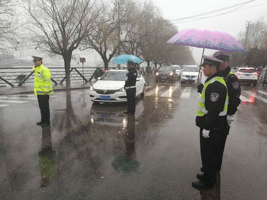 中華龍都網(wǎng)訊 (周口報(bào)業(yè)全媒體記者 侯俊豫 通訊員 王勇) 3月1日,淮陽(yáng)縣在羲皇賓館上午下午分別召開(kāi)全縣政法工作會(huì)議和紀(jì)檢監(jiān)察會(huì)議,參會(huì)人員分別達(dá)千余人。會(huì)議緊張進(jìn)行了一天,淅淅瀝瀝的小雨下了一天。負(fù)責(zé)道路保障任務(wù)的交警大隊(duì)城市中隊(duì)民警冒雨執(zhí)勤從黎明到天黑,交警真的成了“澆警”,但執(zhí)勤民警克服惡劣天氣的影響,圓滿完成了會(huì)場(chǎng)附近道路保障工作。