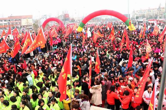 中華龍都網(wǎng)訊(記者李瑞才 通訊員 胡洪濤 劉傳保 文圖)3月8日上午,在美麗的鹿邑縣游客服務(wù)中心廣場(chǎng)迎來了由鹿邑縣婦聯(lián)主辦的慶“三八”女子長跑比賽。全縣114個(gè)代表隊(duì)5000余名運(yùn)動(dòng)員參賽??h領(lǐng)導(dǎo)梁建松、付吉廣、武衛(wèi)東等縣處級(jí)領(lǐng)導(dǎo)出席開幕式,開幕式由縣委副書記付吉廣主持。