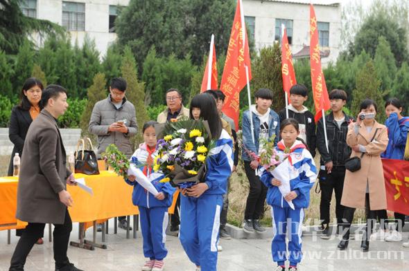 隨后,學(xué)生代表向烈士敬獻花籃,全體人員給烈士紀念碑敬獻了小白花,并鞠躬默哀,以此寄托對革命先烈的深深敬意和無限哀思。之后,少先隊員們在老師的帶領(lǐng)下,重溫了入隊誓詞。