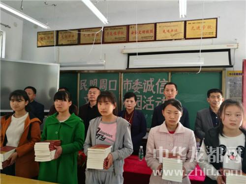活動(dòng)當(dāng)日,民盟周口市委一行數(shù)人分別到商水縣新城小學(xué)和張莊一中等學(xué)校舉辦誠信講座,并捐贈(zèng)數(shù)百本盟員戚富崗編著的誠信圖書。在每一所學(xué)校,民盟市委都為同學(xué)們送上一場精彩的講座。他們用鮮明的事例讓同學(xué)們深刻體會(huì)到只有內(nèi)心裝滿誠信,品格才會(huì)高尚、筆下的文字才會(huì)打動(dòng)人、才會(huì)實(shí)現(xiàn)理想抱負(fù)有所作為!