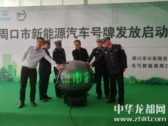 中華龍都網(wǎng)訊(周口報業(yè)全媒體記者 姬慧洋 陳永團 文/圖)4月10日上午10時,在市區(qū)太清路與昆侖路交叉口附近,我市新能源汽車號牌發(fā)放儀式啟動,在啟動儀式上周口市公安局交通管理支隊支隊長謝偉親手將“豫PD08887”這副新能源汽車號牌送到車主張磊的手中。據(jù)介紹,為了能夠盡早選到自己心儀的號牌,家住市區(qū)漢陽路附近的張磊一大早就趕到了位于建設(shè)大道與周口大道交叉口周口幼師北門附近的萬達便民服務(wù)站,在現(xiàn)場通過“50選1”的號牌選擇方式,喜獲自己心儀的號牌。