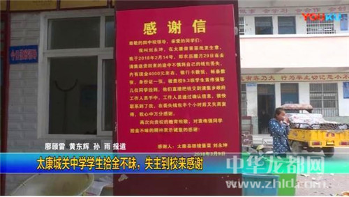 中華龍都網(wǎng)訊(周口報業(yè)全媒體記者 馬治衛(wèi) 通訊員 王宇先)3月15日,市民劉永坤帶著寫有“拾金不昧 品德高尚”的錦旗送到太康縣四中,對該校學生袁偉強的拾金不昧行為表示謝意。