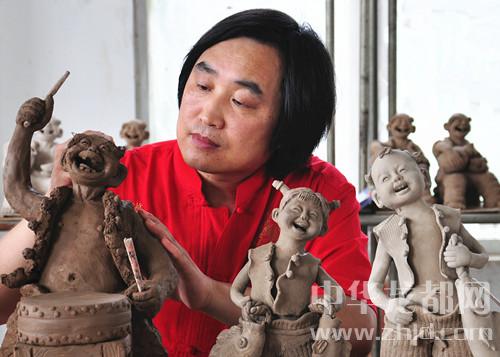 從發(fā)現(xiàn)泥人碰撞易碎、遇水易損,張振福便歷盡艱辛、反復嘗試,終于像燒磚頭一樣,把泥塑燒成了陶塑;然而,從土黃色變成了磚瓦色,陶塑的顏色仍然單一、呆板,不能展示出泥塑的深層次神韻。于是,張振福大膽地將泥塑與鈞瓷結合起來,創(chuàng)造了一個不一樣的藝術世界。