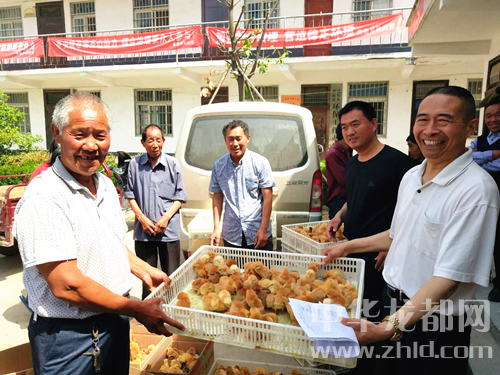 本次為簽約的建檔立卡貧困戶發(fā)放雞苗3000只,這標(biāo)志著丁偉先生助力家鄉(xiāng)脫貧攻堅(jiān)落到了實(shí)處。