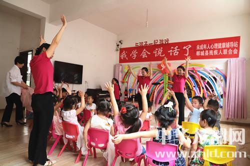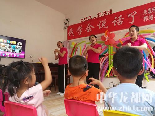 家長(zhǎng)如此開朗,孩子們的世界肯定會(huì)更加陽光。記者隨著鄲城縣殘聯(lián)理事長(zhǎng)楊瑞林和聾兒語訓(xùn)中心主任邵莉娜來到了二樓聾兒語訓(xùn)學(xué)習(xí)班?!拔覍W(xué)會(huì)說話了”,大愛至簡(jiǎn),教學(xué)班里僅此一句標(biāo)語,墻上是一面鏡子,鏡子上貼滿了老師和孩子們一起做的彩氣球,旁邊是一架鋼琴,4位語訓(xùn)老師正在張著大口(說話標(biāo)準(zhǔn)口形)、動(dòng)作夸張地給孩子上聽力課,老師邊彈琴,邊做手指舞、跳少兒舞,孩子們慢慢聽、慢慢模仿、慢慢張口咿呀跟著唱……