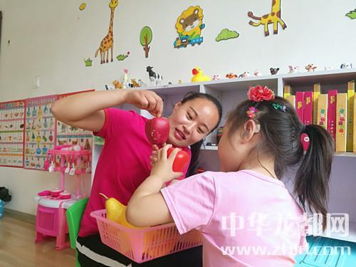 在舞蹈室,孩子們跟著老師的樣子跳《兩只老虎》《小蜜蜂》;在單訓(xùn)室,張靜用手捂著嘴(孩子會(huì)看口形)慢慢地說:“圓圓的、甜甜的、紅紅的——蘋果”,孩子聽到了聲音,很快從裝滿水果模型的筐子里挑出了兩個(gè)“蘋果”;于倩貼在孩子的耳邊描述著玩具的顏色,孩子就把對(duì)應(yīng)顏色的積木挑出來;范玉智聽到孩子把梨讀成了“姨”,她就用自己的嘴辱貼近孩子的手背上,用力地用“了”的聲音震動(dòng)著孩子的小手,然后反復(fù)張大口重復(fù)著“了”,讓孩子看自己舌頭的振動(dòng)……“雷!”孩子又學(xué)了一句,雖然發(fā)音不準(zhǔn)確,但發(fā)出了振動(dòng)的翹舌音,范玉智微笑著給了一個(gè)擁抱……