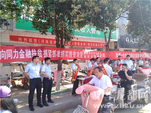 中華龍都網(wǎng)訊(周口報業(yè)全媒體記者 李瑞才 通訊員 任留兵)6月12日上午,鹿邑縣金融辦、縣公安局、縣扶貧辦及轄區(qū)各大銀行,在縣政府大門東側(cè)集中宣傳并向過往市民詳細(xì)講解小額信貸惠民政策和防范非法集資知識,希望通過政策引領(lǐng)助力廣大群眾實(shí)現(xiàn)創(chuàng)業(yè)創(chuàng)收夢想??h委書記梁建松、常務(wù)副縣長陸志杰到活動現(xiàn)場指導(dǎo)工作。各脫貧攻堅(jiān)責(zé)任銀行行長及縣金融辦工作人員現(xiàn)場接受群眾咨詢,氣氛非常熱烈,取得了良好的宣傳效果。