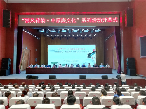 7月24日上午,“清風(fēng)荷韻·中原廉文化”書畫篆刻名家作品展暨國家治理名家大講堂等系列活動在淮陽縣舉行。省紀(jì)委監(jiān)察委宣傳部長袁勇、省社科院黨委副書記周立、河南日報報業(yè)集團大河網(wǎng)總編輯孟磊、中央黨?!秾W(xué)習(xí)時報》副總編輯楊英杰及淮陽縣委書記馬明超、縣長王毅等出席?;顒佑墒形N?、紀(jì)委書記、監(jiān)察委主任劉孟連主持。