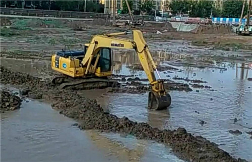當(dāng)日16時(shí)許,記者在順和家園施工現(xiàn)場看到,由于近幾天連降暴雨,基坑內(nèi)積水嚴(yán)重,目前,施工方投入井點(diǎn)降水水泵70臺,基坑內(nèi)抽水污水泵20臺正在進(jìn)行基坑抽水,為及時(shí)復(fù)工創(chuàng)造條件。