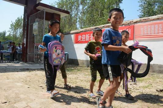 8月27日上午11時(shí)許,商水縣平店鄉(xiāng)大朱莊村小學(xué)大 門外,突然停放一輛廂式貨車??吹接袉挝凰蛠?lái)了“開(kāi)學(xué)禮”,學(xué)校老師和學(xué)生滿臉興奮 、七手八腳和來(lái)人一塊卸下一些嶄新的課桌凳、書包文具等學(xué)習(xí)辦公用品。