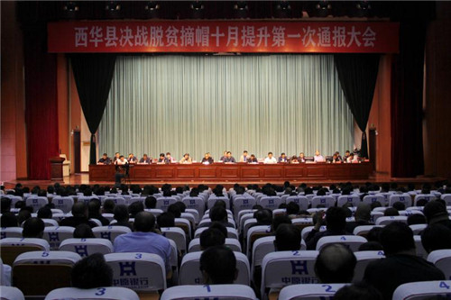 10月14日下午,西華縣召開決戰(zhàn)脫貧摘帽十月提升第一次通報大會??h委書記林鴻嘉,縣長田慶杰,市脫貧攻堅(jiān)第二督查巡查組長李濤等領(lǐng)導(dǎo)出席會議。
