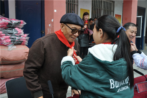 看到這一幕,黃寨鎮(zhèn)黨委書記朱宏偉動情地說:“讓我們?nèi)珗銎鹆ⅲ脽崃业恼坡曄蛴趯W龍老人表示崇高的敬意!于老千里迢迢回到故鄉(xiāng),用一份飽含愛心的余熱,給我們帶來了溫暖,他是最可敬的人,也是最可愛的人。希望埠口小學全體師生學習于老的這種高尚情懷,辦好學校、育好人才,培養(yǎng)好一個個家庭的希望,助力脫貧攻堅!”