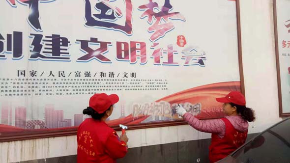 前來參加活動(dòng)的劉愛青和岳巧玲兩位老人今年都是61歲,她們?cè)谇謇硇V告的時(shí)候,動(dòng)作麻利,做事認(rèn)真,直到把每一個(gè)小廣告清理的干干凈凈才才肯罷手。
