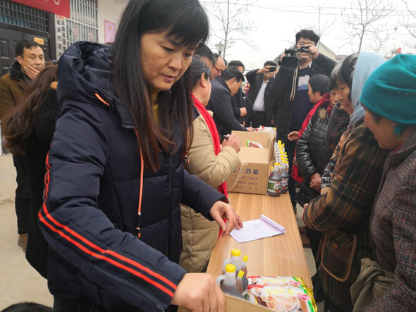 副縣長(zhǎng)喬偉講話。商務(wù)局局長(zhǎng)李曉紅、清集鎮(zhèn)常委書(shū)記吳文靜對(duì)開(kāi)展本次活動(dòng)的目的,意義及有關(guān)扶貧政策做了講解。活動(dòng)由清集鎮(zhèn)鎮(zhèn)長(zhǎng)許世杰主持。本次慰問(wèn)給桂崗村貧困戶送來(lái)餃子300件,食用醋300件?!罢肜照嬷艿窖?,這在以前想都不敢想,真心的感謝政府,感謝現(xiàn)在的好政策?!币晃粍傤I(lǐng)到餃子的老黨員感動(dòng)地說(shuō)。