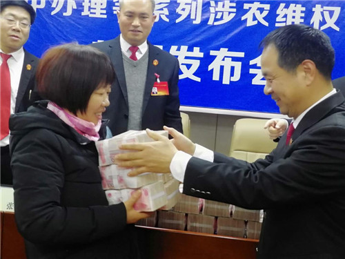 “感謝項(xiàng)城法院的領(lǐng)導(dǎo),他們一心為民,克服種種困難,幫助我們要回了血汗錢(qián)?!?2月24日,項(xiàng)城法院拖欠農(nóng)民工工資案件集中辦理等系列涉農(nóng)維權(quán)活動(dòng)新聞發(fā)布會(huì)在該院召開(kāi),16名涉農(nóng)維權(quán)案件當(dāng)事人從項(xiàng)城法院黨組成員、院長(zhǎng)張永波的手中接過(guò)索要許久的血汗錢(qián),喜極而泣。