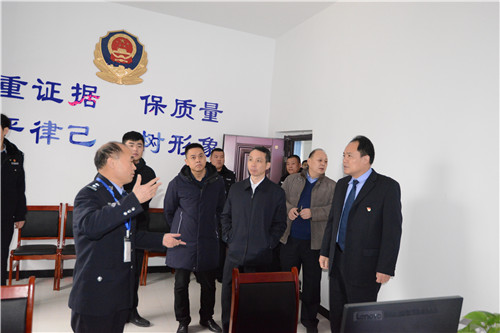 調(diào)研組一行深入鹿邑縣公安局新辦公業(yè)務(wù)用房工地、執(zhí)法辦案中心、高集派出所新址等處實地調(diào)研基層建設(shè)工作。鹿邑縣副縣長、縣公安局長何新敏介紹了2018年鹿邑公安整體工作以及高質(zhì)量公安建設(shè)有關(guān)情況。