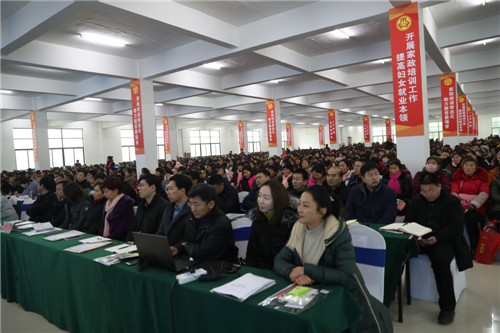 會上,王蘇、張俊美在講話中對太康縣“巾幗家政”扶貧工作給予了充分肯定,同時太康縣家政再出發(fā)工作寄語了厚望。太康縣縣長李錫勇代表縣委、縣政府向大會的召開表示祝賀,向長期以來關(guān)心支持太康發(fā)展的省、市領(lǐng)導(dǎo)表示感謝,并向全縣奮戰(zhàn)在脫貧攻堅的婦女同志致以誠摯的問候和美好的祝愿。李錫勇強調(diào),一要提升政治站位,統(tǒng)一思想認(rèn)識。開展家政扶貧培訓(xùn),是落實總書記教育扶貧思想的生動實踐。開展家政扶貧培訓(xùn),是太康縣助力脫貧攻堅的成功嘗試。開展家政扶貧培訓(xùn),是激發(fā)全縣廣大婦女內(nèi)生動力的主要抓手。二要認(rèn)真組織實施,確保培訓(xùn)質(zhì)量。對此,要摸清實情、科學(xué)謀劃、搭建平臺,確保形成合力。三要建立健全機制,打造家政品牌。太康縣委、縣政府把“巾幗家政”扶貧工程作為“三級書記”工程來抓,縣委書記、縣長帶頭遍訪貧困村,包鄉(xiāng)縣級領(lǐng)導(dǎo)干部遍訪所包鄉(xiāng)鎮(zhèn)的每個村民組,鄉(xiāng)鎮(zhèn)黨委書記、縣直分包鄉(xiāng)鎮(zhèn)負(fù)責(zé)人遍訪鄉(xiāng)鎮(zhèn)有婦女勞動力的貧困戶,村黨支部遍訪全村農(nóng)戶,宣講家政培訓(xùn)就業(yè)政策,協(xié)調(diào)解決研究存在的困難和問題,幫助建立“巾幗家政”扶貧工程長效機制。