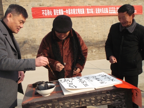 鄧城鎮(zhèn)范莊村72歲的范長印老人觀展后感觸頗深地說:“這些展品我很多都見過、用過,不過用起來真費(fèi)勁真受罪??!現(xiàn)在農(nóng)忙季節(jié)機(jī)器一響,糧食嘩啦啦就進(jìn)家了。我這個(gè)年齡的人最能體會到咱們國家的進(jìn)步和社會的美好!”隨后,老人在留言薄上用握慣農(nóng)具的粗糙大手握起毛筆寫下了“新時(shí)代,得民心”幾個(gè)字。字雖不工整但他的滿腔真情感動了在場的群眾,大家把熱烈的掌聲送給范長印老人。