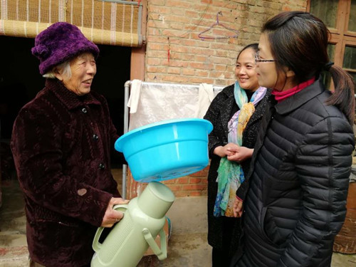 一個水瓶、一幅年畫足以溫暖一個村莊……1月26日,淮陽縣婦聯(lián)迅速落實縣委、縣政府“大走訪、大宣傳、大慰問”工作部署,駐村工作隊長張健帶領(lǐng)第一書記、工作隊員和村兩委干部對大連鄉(xiāng)代廟村挨門逐戶進行走訪慰問,把黨和政府的關(guān)懷送到尋常百姓家。