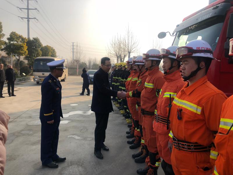 在開發(fā)區(qū)消防大隊,王文峰與每一位消防隊員握手,詳細(xì)詢問他們的工作、生活、學(xué)習(xí)情況。王文峰指出,2018年,開發(fā)區(qū)消防大隊牢記“聽黨指揮,能打勝仗,作風(fēng)優(yōu)良”,努力訓(xùn)練,敢于戰(zhàn)斗,面對一系列急難險重任務(wù)能夠拉得出、打得贏,為保障人民群眾生命財產(chǎn)安全作出了重要貢獻(xiàn)。新的一年,全市消防救援隊伍要繼續(xù)發(fā)揚特別能吃苦、特別能戰(zhàn)斗的優(yōu)良傳統(tǒng),加強(qiáng)應(yīng)急救援綜合能力建設(shè),真正發(fā)揮好應(yīng)急救援主力軍和國家隊的職能作用。