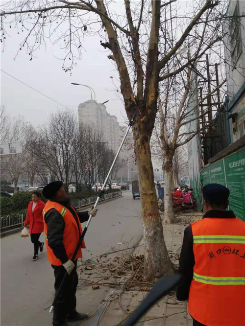 2月26日上午,為避免枯枝墜落傷人,有關部門派出人員在慶豐路與中原路交叉口東側清理行道樹枯枝。