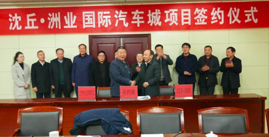 2月26日,沈丘洲業(yè)國(guó)際汽車城項(xiàng)目簽約儀式在錦華大酒店舉行。沈丘縣委書記皇甫立新,縣長(zhǎng)劉國(guó)慶,縣委常委、常務(wù)副縣長(zhǎng)郝四春,副縣長(zhǎng)呂孝坤,副處級(jí)干部張曉,上海洲業(yè)企業(yè)管理有限公司董事長(zhǎng)李海波,總裁李榮輝等出席簽約儀式,縣直相關(guān)職能部門負(fù)責(zé)人參加了簽約儀式。