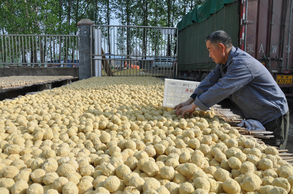 練集鎮(zhèn)閆橋村以變蛋加工聞名全市。該村有30多個(gè)變蛋加工廠,帶動(dòng)周邊多個(gè)行政村通過(guò)變蛋加工實(shí)現(xiàn)致富增收。去年,該村加工變蛋3600多萬(wàn)個(gè),通過(guò)電商平臺(tái)遠(yuǎn)銷(xiāo)省內(nèi)外。圖為4月28日上午,該村勇創(chuàng)變蛋加工廠技術(shù)人員在查看變蛋晾曬情況。