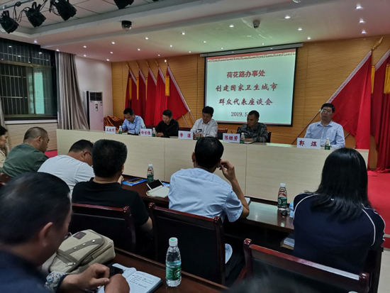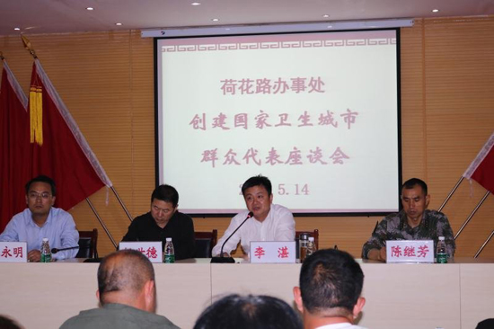 5月14日晚8時,區(qū)長李湛主持召開荷花路辦事處創(chuàng)建國家衛(wèi)生城市群眾代表座談會。區(qū)人大黨組成員任世德、區(qū)檢察院檢察長郭煜、區(qū)武裝部長陳繼芳出席。荷花辦科級干部、社區(qū)書記、轄區(qū)黨員和群眾代表100多人參加。