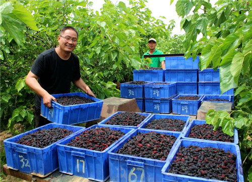 除此之外,桑果的采摘全靠人工,是勞動密集型產業(yè),需要大量當地的勞動力,每到采摘季節(jié),公司都會招用周邊200余名村民到種植基地務工,僅此一項,為每名務工人員人均增收3000余元。“俺在益品桑椹種植基地采摘桑椹,每天都有100多元的收入?!苯衲?3歲的黃橋鄉(xiāng)孫堤村留守婦女趙美容高興的說。