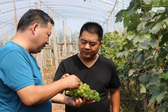 “2016年我們財(cái)政局出資13萬元,幫村民建了這個(gè)15畝的葡萄園,由30戶貧困戶做股東,孫東獻(xiàn)懂葡萄種植技術(shù)由孫東獻(xiàn)來管理,每年帶動(dòng)近十戶貧困戶來葡萄園打工,每戶凈收入4000多元,加上出售葡萄的分紅,每戶凈收入提高到近5000元。并且這是個(gè)可持續(xù)發(fā)展的項(xiàng)目。”駐村書記侯俊昌介紹說。