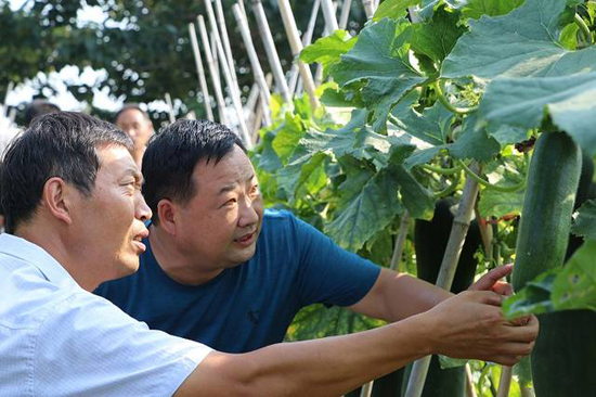 炎炎夏日,大棚下的侯俊昌汗水再次濕透,他撫摸著一串串紫紅色的葡萄說,這都是改變貧窮的“紫珍珠”啊,只要我們班子上下齊心協(xié)力,小小的葡萄也能幫我們“拔掉窮根。”不僅僅是葡萄產(chǎn)業(yè),村里的婦聯(lián)主任徐桂蘭也主動(dòng)帶頭創(chuàng)業(yè),承包了80畝的田地,種起了優(yōu)質(zhì)冬瓜,畝產(chǎn)上萬斤,通過駐村幫扶,提供產(chǎn)銷信息,遠(yuǎn)銷到省內(nèi)外多地。秋季種小麥、夏季種冬瓜的模式,畝產(chǎn)收益均在4000元以上。她平時(shí)鼓勵(lì)村里貧困戶到冬瓜地打工,每年帶動(dòng)近20戶貧困戶,每戶增加收益近5000元?!焙羁〔嬖V我們,“產(chǎn)業(yè)扶貧,造血扶貧在位口村已經(jīng)深深扎根,同時(shí)也吸引了很多在外務(wù)工的有識(shí)青年返鄉(xiāng)創(chuàng)業(yè),有的做起了尾毛生意、有的做起了毛刷生意?,F(xiàn)在全村興起人人講創(chuàng)業(yè),戶戶拼經(jīng)濟(jì)的良好氛圍?!?/p>