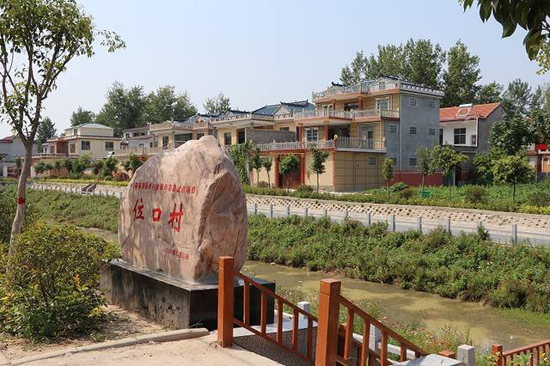 天藍(lán)水清,綠樹成蔭,九曲橋旁邊的岸上開滿了格?;ǎ粫r(shí)有水鳥從水面掠過,這不是某個(gè)大城市的濕地公園。這是位口村的“水上公園,”如今已經(jīng)成了村里的標(biāo)志性建筑。夜幕降臨,村民們?nèi)齼蓛删墼诤舆吷⒉?、乘涼?!庇腥司幜诵∏焊裆;▋合蜿栭_,歡迎您到位口來;扶貧攻堅(jiān)結(jié)碩果,村民感恩黨關(guān)懷……