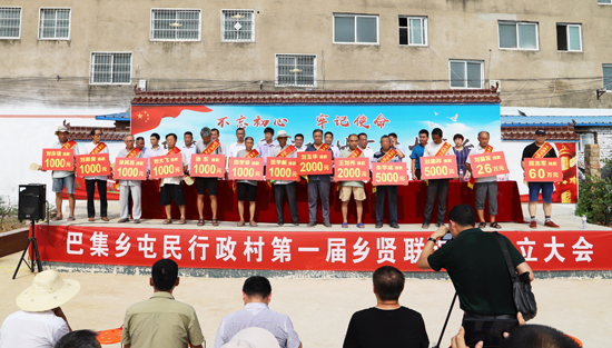 “段志軍每年都捐資捐物回報(bào)家鄉(xiāng),他去年捐30萬(wàn)為巴集大街和屯民村安裝的200多盞路燈已經(jīng)亮了,捐85萬(wàn)元新建的村室馬上竣工,將是全縣標(biāo)準(zhǔn)最高的,現(xiàn)在又捐60萬(wàn)元;劉振發(fā)這幾年捐了40萬(wàn)多,給村里修路、栽樹、幫扶貧困戶,今天又捐26萬(wàn);鄉(xiāng)賢會(huì)成立之前,大家已累計(jì)捐款240多萬(wàn)元……”在今年8月6日屯民行政村鄉(xiāng)賢會(huì)成立儀式上,朱明理宣布捐款名單時(shí)多次被雷鳴般的掌聲打斷;“最難忘的就是村口的那棵大楊樹,最好吃的就是中午剩的涼面條、晚上嗑著大蒜吃。”在三門峽創(chuàng)業(yè)的劉振發(fā)的發(fā)言勾起了眾多游子的親情回憶;“啃個(gè)干饃,灶火里燒個(gè)辣椒一砸,撒點(diǎn)兒鹽就是最好吃的?!痹谏糖鹑温毜男炱渖浇舆^(guò)話茬說(shuō);“事業(yè)越大,工作越忙。但是,他們從四面八方歸來(lái),這就是對(duì)家鄉(xiāng)的情誼,我們村肯定會(huì)越來(lái)越好?!编l(xiāng)賢徐其民感慨地說(shuō);“從屯民走出的大學(xué)生不少,如今長(zhǎng)成了企業(yè)家、行政干部等等,如參天大樹,卻不忘根、不忘本,這就是屯民的驕傲?!睆氖陆逃袠I(yè)35年的鄲城二高校長(zhǎng)趙耀身為屯村一員感觸良多……