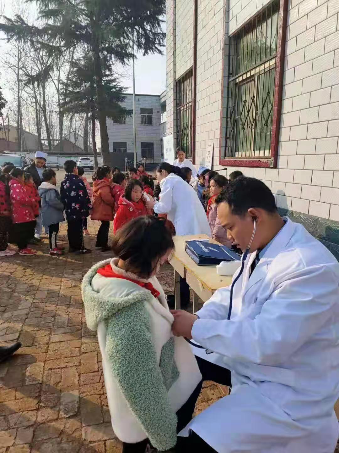 在隨后的義診活動(dòng)中,普禾醫(yī)療集團(tuán)兒科專家孫東風(fēng)帶領(lǐng)醫(yī)療隊(duì)的成員為賈寨小學(xué)所有學(xué)生進(jìn)行健康體檢,量身高、測(cè)體重、測(cè)視力、查胸透等,對(duì)有健康隱患的學(xué)生耐心講解注意事項(xiàng)。