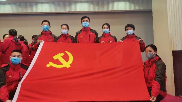 3月19日,周口援鄂醫(yī)療隊(duì)周口市中心醫(yī)院祁文麗、徐貴琴、解玉東、王亞麗、王玉才、王冰清6名隊(duì)員,站在鮮紅的黨旗面前莊嚴(yán)宣誓志愿加入中國(guó)共產(chǎn)黨。