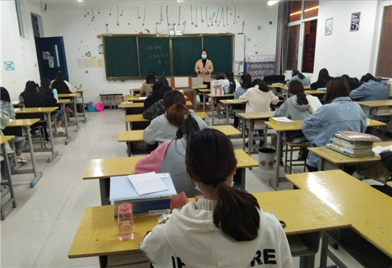 4月20日,學(xué)生報(bào)到。在校外廣場(chǎng),有專業(yè)教師耐心引導(dǎo),學(xué)生掃描健康碼進(jìn)行登記,間隔一米以上有序排隊(duì),電子測(cè)溫后進(jìn)入消毒區(qū)域。進(jìn)入校門前簽字確認(rèn),再次測(cè)溫,進(jìn)行身體和物品消毒方可進(jìn)入校園,學(xué)生找到自己專業(yè)班級(jí)登記確認(rèn)后進(jìn)入宿舍。就餐時(shí)單人單桌、同向按號(hào)進(jìn)餐。 4月21日,開(kāi)學(xué)首日上午播放省教育廳制作的疫情防控宣傳片。院長(zhǎng)侯營(yíng)坡安排部署近期教學(xué)和防疫工作。下午各專業(yè)繼續(xù)進(jìn)行疫情防控知識(shí)普及、愛(ài)國(guó)主義教育、健康教育、心理疏導(dǎo)、食品安全教育等,由復(fù)學(xué)方案指定的教師分別授課。晚課時(shí)間召開(kāi)主題班會(huì),班主任具體負(fù)責(zé),講解老師參加,采取師生互動(dòng),學(xué)生人人發(fā)言,讓學(xué)生進(jìn)一步懂得防控疫情的重要性及防控措施方法。學(xué)生上課實(shí)行單人單桌,保持一定距離,課前測(cè)試體溫,拒絕發(fā)熱學(xué)生進(jìn)入教室,做到教室通風(fēng),師生戴口罩,下課后不聚集,有序休息離開(kāi)教室。教務(wù)處及各專業(yè)負(fù)責(zé)教學(xué)和疫情防控情況的督導(dǎo)。