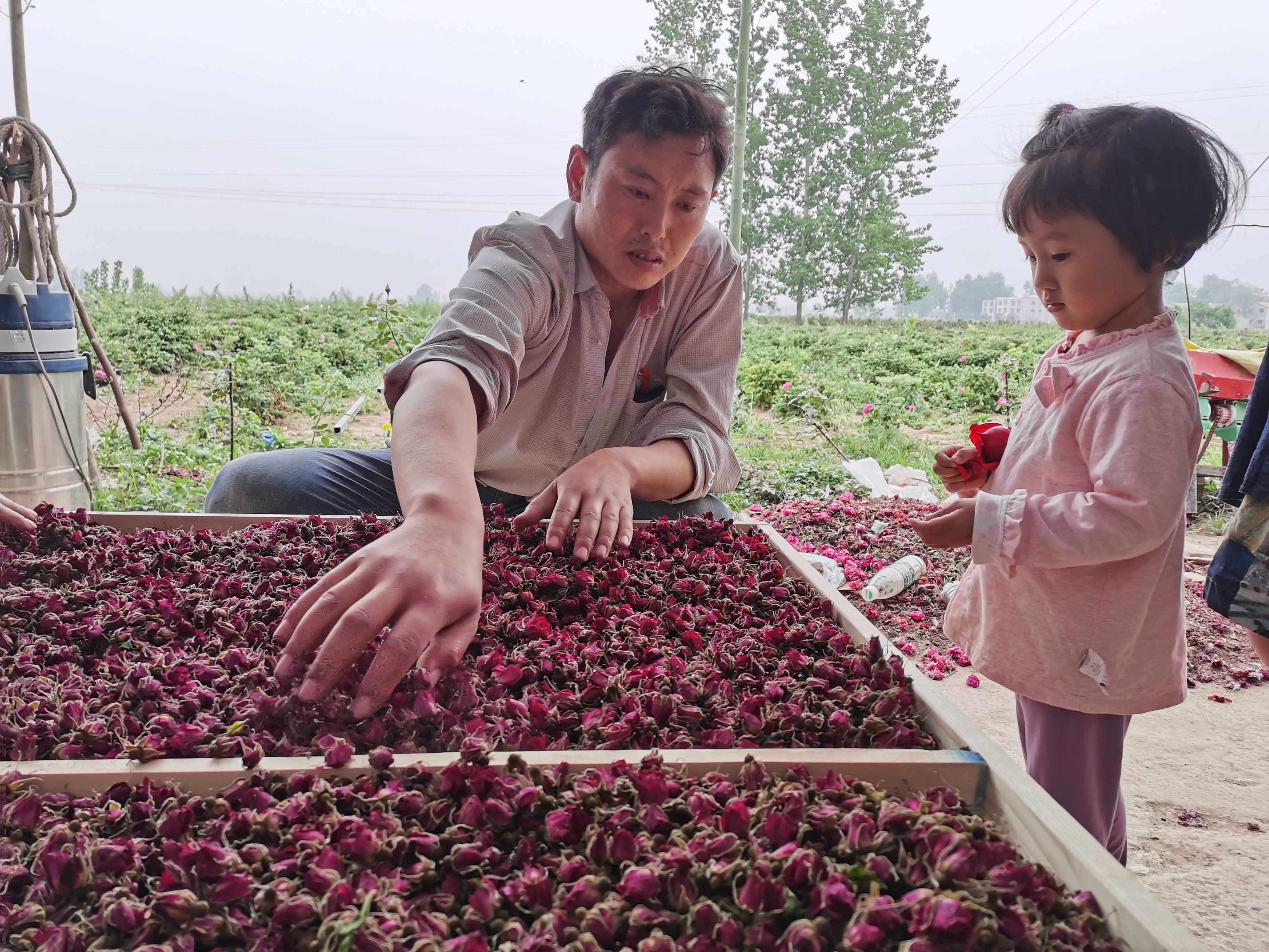 商水縣平店鄉(xiāng)雒莊村的村民通過規(guī)模流轉土地、成立合作社的方式,發(fā)展玫瑰花卉種植。據(jù)玫瑰種植戶劉軍停介紹,他種植的玫瑰有觀賞玫瑰和可食用玫瑰,觀賞玫瑰多供應省內外各地花卉市場,一年可采收3茬;可食用玫瑰通過再加工成玫瑰花茶、玫瑰醬等玫瑰產品。