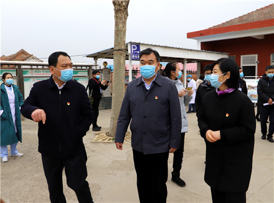 (2020年2月26日,市委書記劉繼標(biāo)在鄲城縣虎崗鄉(xiāng)村衛(wèi)生室聽(tīng)取羅文閣、李全林關(guān)于醫(yī)共體建設(shè)工作匯報(bào)。)