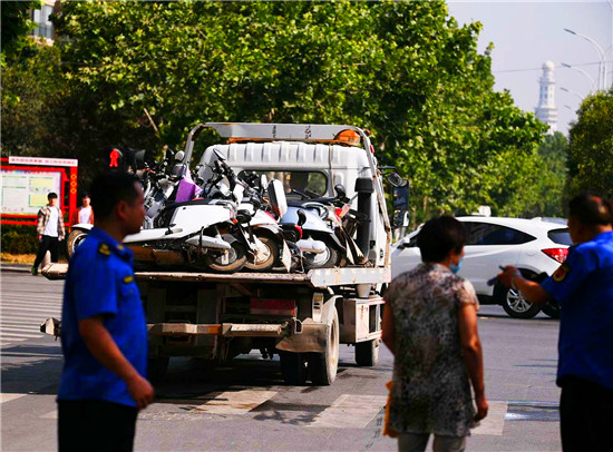 從今天開始,周口中心城區(qū)創(chuàng)衛(wèi)按下"嚴管健”,其中由城管部門嚴查電動車逆行、車輛亂停亂放,是規(guī)范城市管理重要一項,逆行者將被暫扣電動車,并接受教育和處罰。6月1曰上午,記者在周口大道和慶豐街交叉口看到,不少電動車騎行者不按規(guī)定行駛,逆行中被查,暫扣車輛被統(tǒng)一拉走,逆行者將接受和處罰。