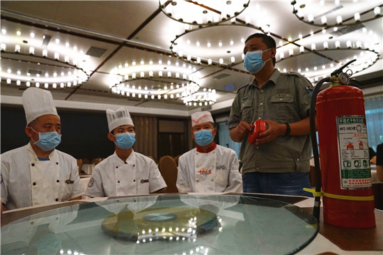 夏季來臨,消防安全成為大家關(guān)注的焦點(diǎn),為了消除隱患,防止安全事故發(fā)生,6月3日,周口飯店精心組織管理人員和員工開展消防應(yīng)急演練,提升消防應(yīng)急處置能力,預(yù)防各種事故發(fā)生。當(dāng)天,來自該飯店餐飲部及客房部40余名工作人員參加了演練。(記者 金月全 攝)