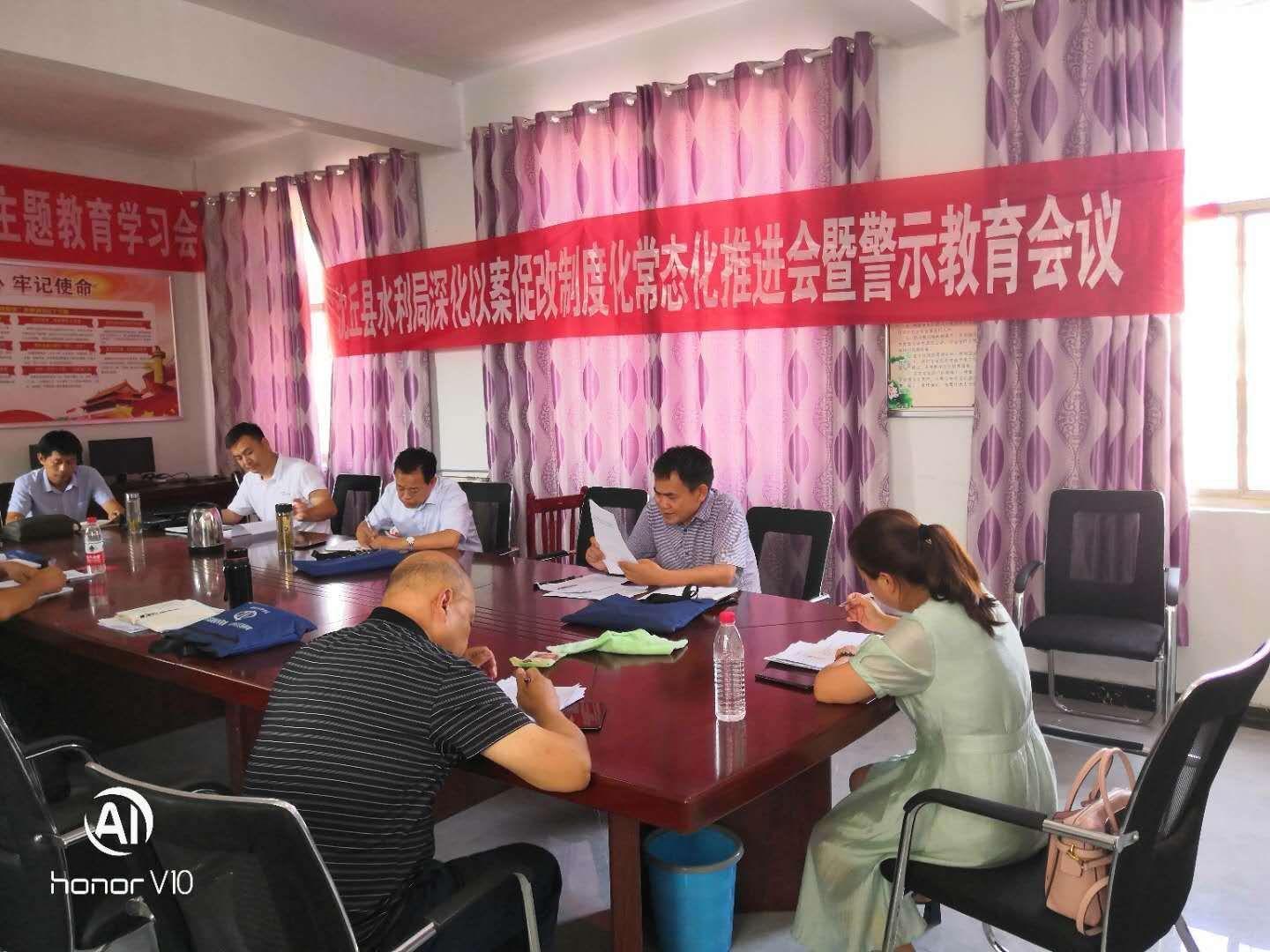 7月9日,沈丘縣水利局召開深化以案促改制度化常態(tài)化推進會暨警示教育大會。會上,局黨組書記、局長張偉傳達了縣委深化以案促改制度化常態(tài)化推進會暨警示教育會精神,宣讀了《關(guān)于在全局集中開展以案促改的專項工作方案》;就下一步如何貫徹落實縣委縣深化以案促改制度化常態(tài)化推進會暨警示教育會精神作出部署安排。