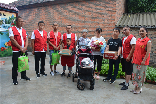7月12日上午,周口市義工協(xié)會(huì)劉玉英帶領(lǐng)市縣義工志愿者一行10余人冒雨到商水縣平店鄉(xiāng)曾莊村看望慰問(wèn)貧困家庭曾廣忍的新生病兒,送去了奶粉、嬰兒車(chē)、衣物等生活用品,送去了社會(huì)慈善機(jī)構(gòu)和愛(ài)心人士的一片關(guān)愛(ài)之情。