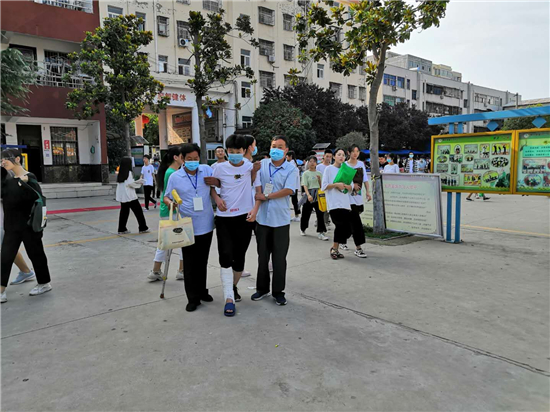 “終于到了,要不是身體好,還真不能一口氣把這孩子背上三樓?!编惓强h第三實(shí)驗(yàn)中學(xué)考務(wù)老師張子江邊擦汗邊笑著說(shuō)。